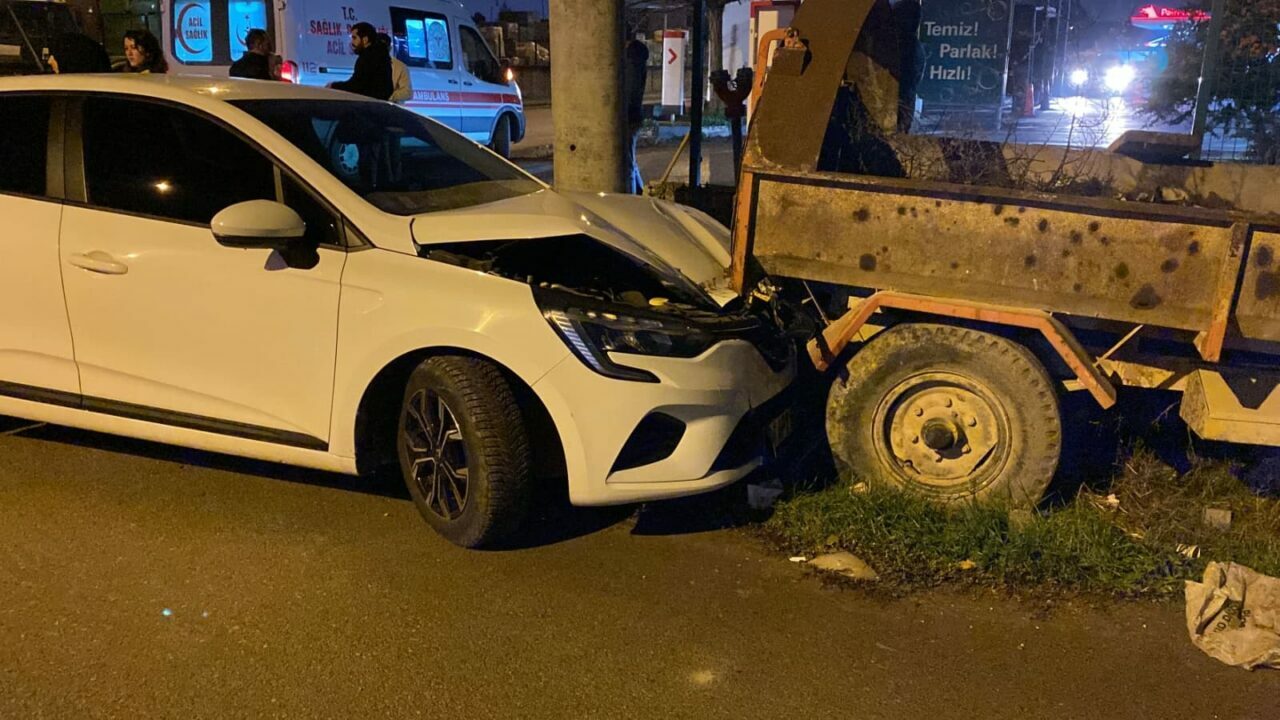 Çarpışmanın etkisiyle savrulan 16 APY 573 plakalı otomobil, park halindeki kamyonete çarparak dururken, kazada her iki otomobil sürücü yaralandı.