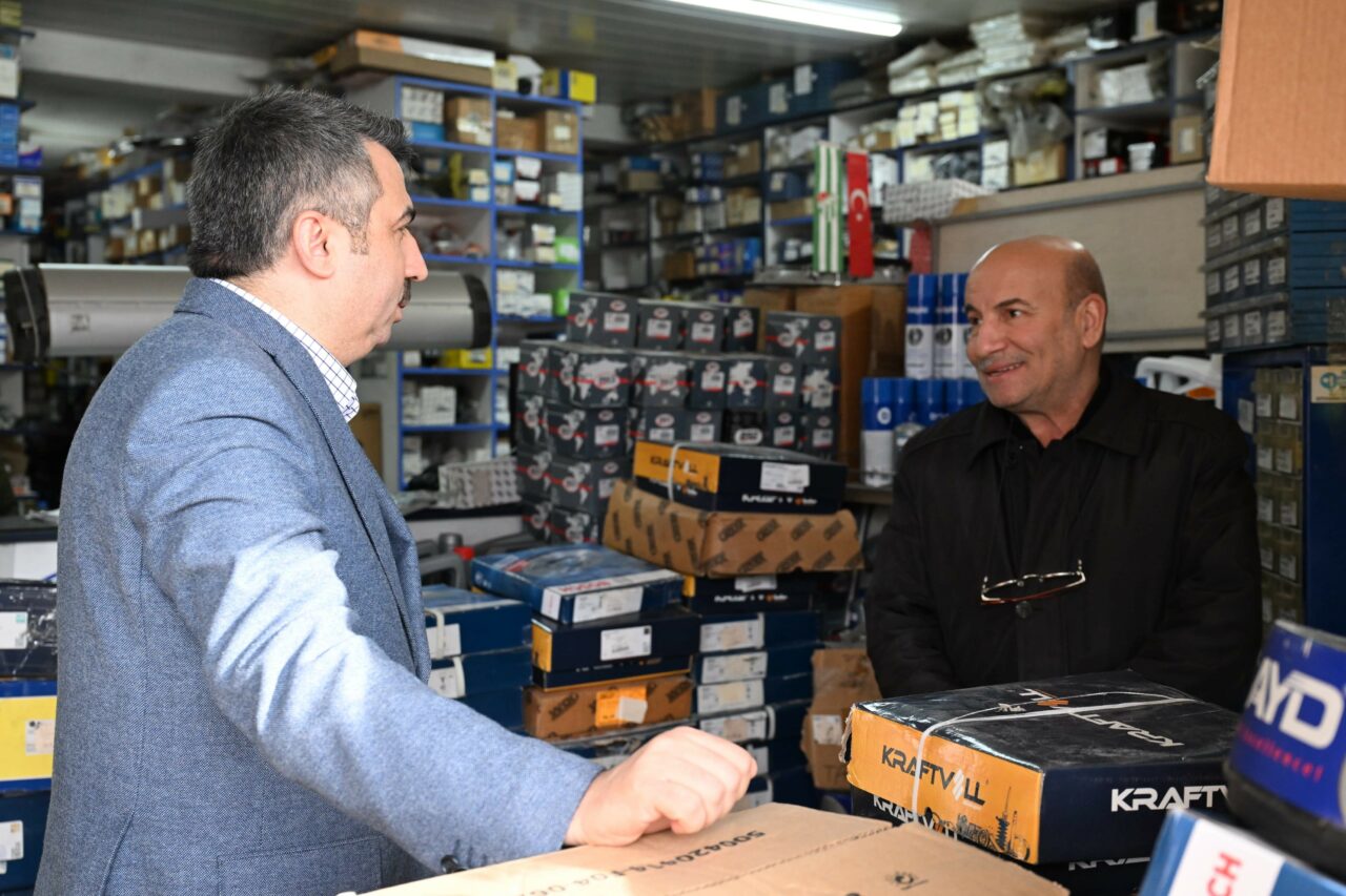 Dükkanları tek tek gezerek esnafa ‘hayırlı işler’ dileyip, site esnafının talep ve görüşlerini dinleyen Başkan Oktay Yılmaz, notlarını aldı.