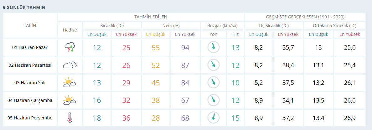 • Perşembe: Aşırı sıcaklar kapıda… Hava sıcaklığı 36 dereceye kadar çıkacak. Gece ise en düşük 18 derece ölçülecek.