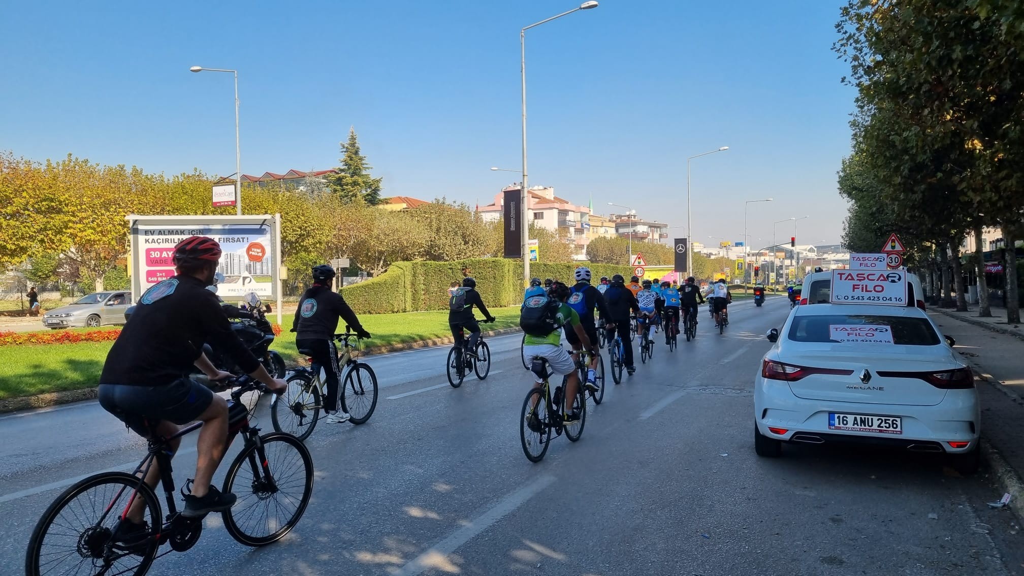 Bursa’nın Nilüfer ilçesinde düzenlenen etkinliğe yaklaşık 50 kişi katılırken, Nilüfer Belediyesi önünde bir araya gelen bisikletçiler, Agora Çarşısı, FSM Bulvarı, Esentepe Kavşağı dönerek turu tamamladı.