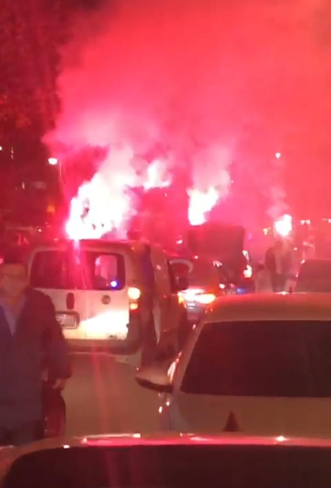 Meşaleler yakıp, çiftetelli oynayan grubun kapattığı yolda uzun araç kuyrukları oluştu.