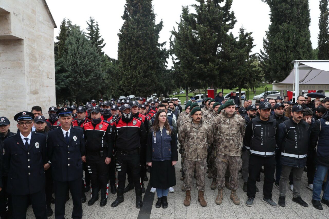 Osmangazi ilçesi Hamitler Polis Şehitliği’nde düzenlenen törene İl Emniyet Müdürü Sabit Akın Zaimoğlu’nun yanı sıra ilçe emniyet müdürleri, emniyet personeli ile şehit polislerin yakınları katıldı.