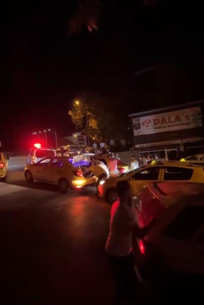 Yüksek İhtisas Kavşağında aracı yakalayan ekipler, ikili arasındaki kavgayı ayırmak isterken, olay yerine taksicinin meslektaşları geldi.