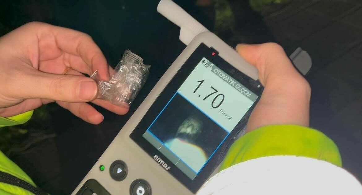 Polis ekipleri ehliyet ibraz edemeyen sürücünün kullandığı kamyoneti trafikten men edip bağladı. Uzun süre alkolmetreyi üflememek için direnen sürücü, 1.70 promil alkollü çıktı.