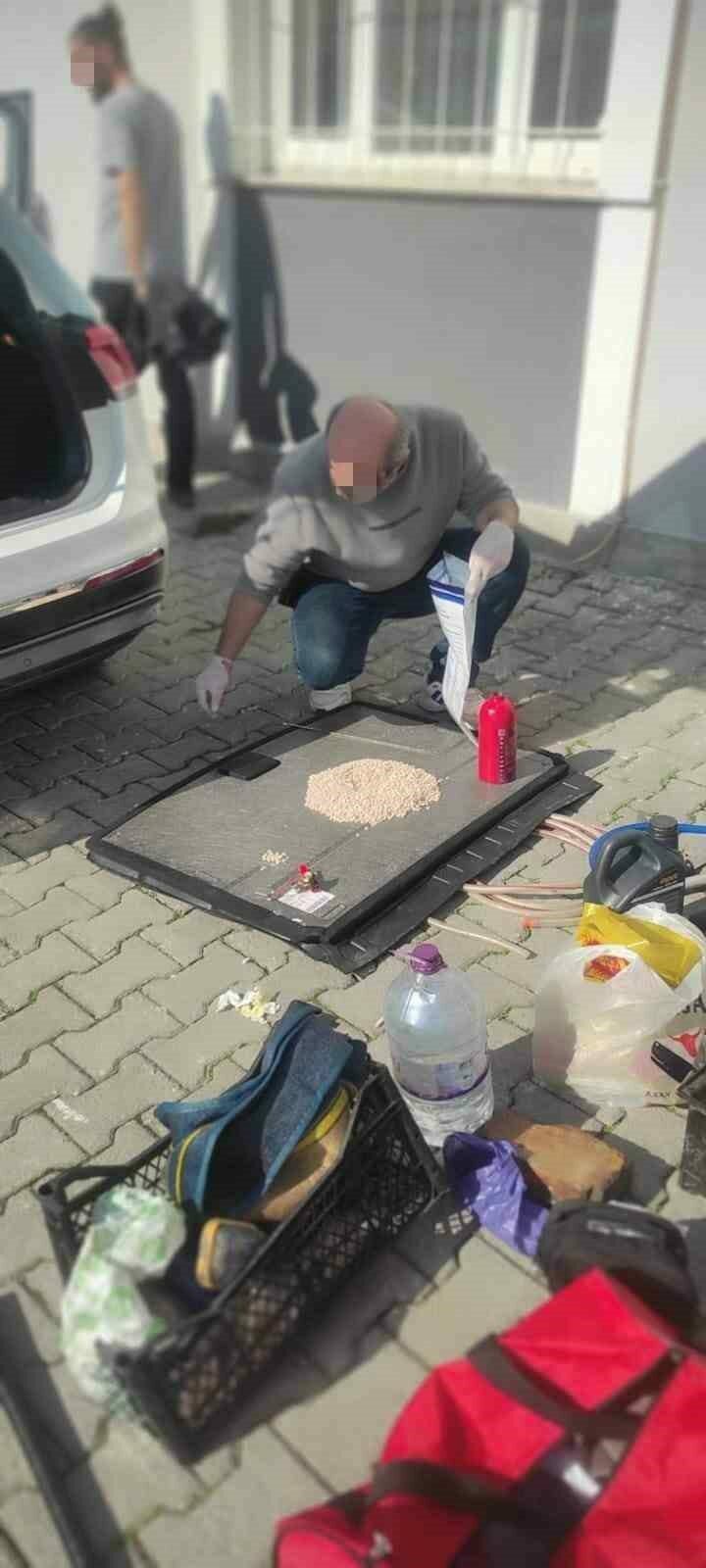 Gemlik İlçe Emniyet Müdürlüğü ekipleri, ilçe genelinde şüpheli şahıslara yönelik rutin olarak yaptığı çalışmalarda şüphelendikleri bir aracı durdurdu. Araçta bulunan O.A. ve O.H. isimli şahısların yapılan üst aramalarında uyuşturucu madde ele geçirildi. Adli makamlara bilgi veren ekipler, şüpheli aracı Emniyet Müdürlüğünün bahçesine çektirdi. Adli makamlardan alınan izinlerin ardından araçta yapılan detaylı aramada 5 bin 526 adet captagon olarak tabir edilen uyuşturucu madde ele geçirildi. O.A. ve O.H. isimli şüphelilerin emniyetteki işlemleri sürüyor.