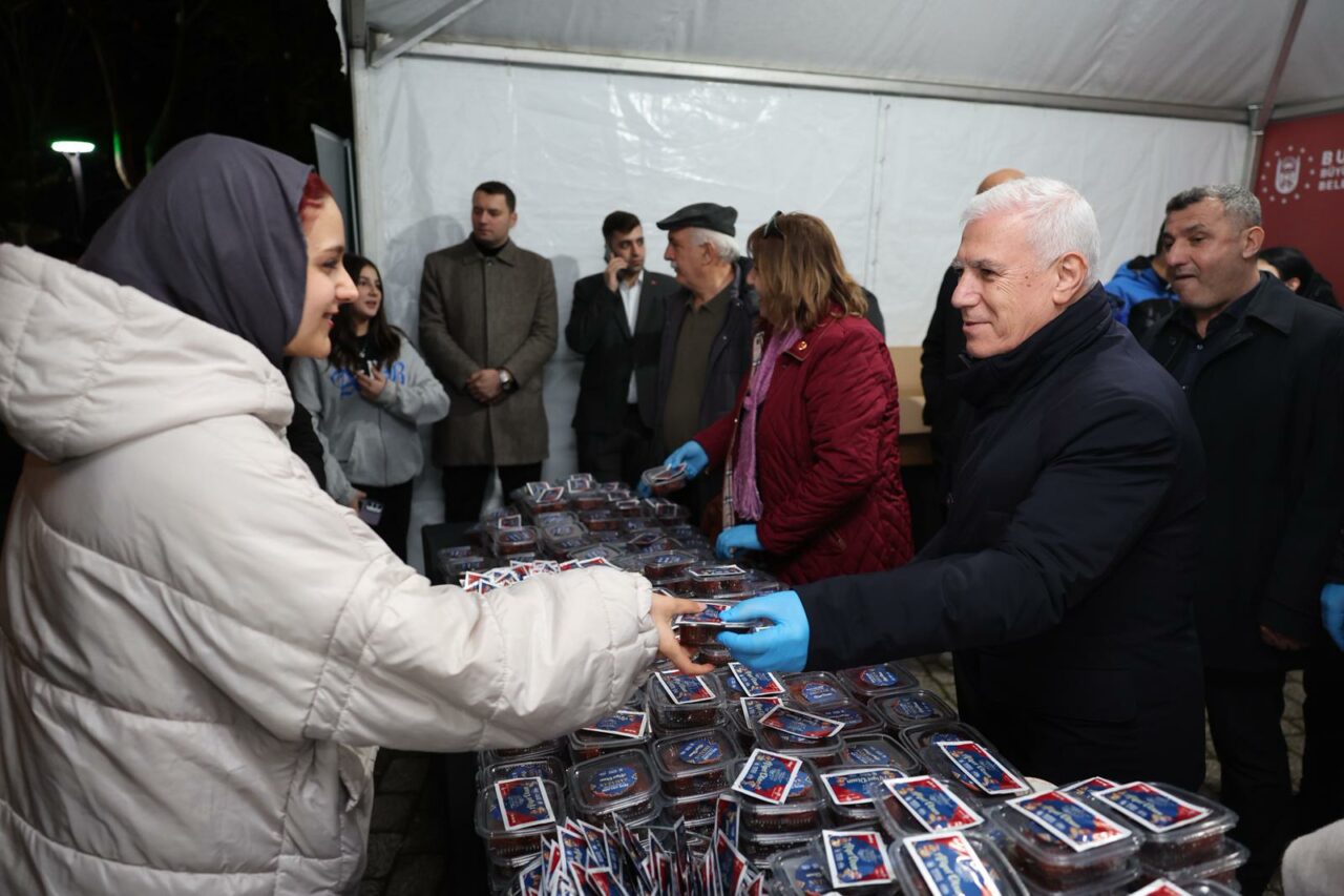 Ramazan ayı boyunca 1061 mahallede teravih namazı sonrası tatlı ikramında bulunacak olan Büyükşehir Belediyesi, Ramazan ayının ilk günü 51 ayrı camide paylaşmanın ve dayanışmanın güzelliğini hep birlikte yaşattı. Bursa Büyükşehir Belediye Başkanı Mustafa Bozbey de Ramazan’ın ilk akşamında Ulu Cami’den sonra Nilüfer Ataevler Edebali Camii’nde vatandaşlarla bir araya gelerek tatlı ikramında bulundu. Ardından cami derneğini ziyaret eden Başkan Mustafa Bozbey, mahalle sakinleriyle bulaşarak taleplerini yerinde dinledi.