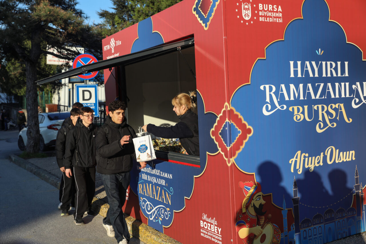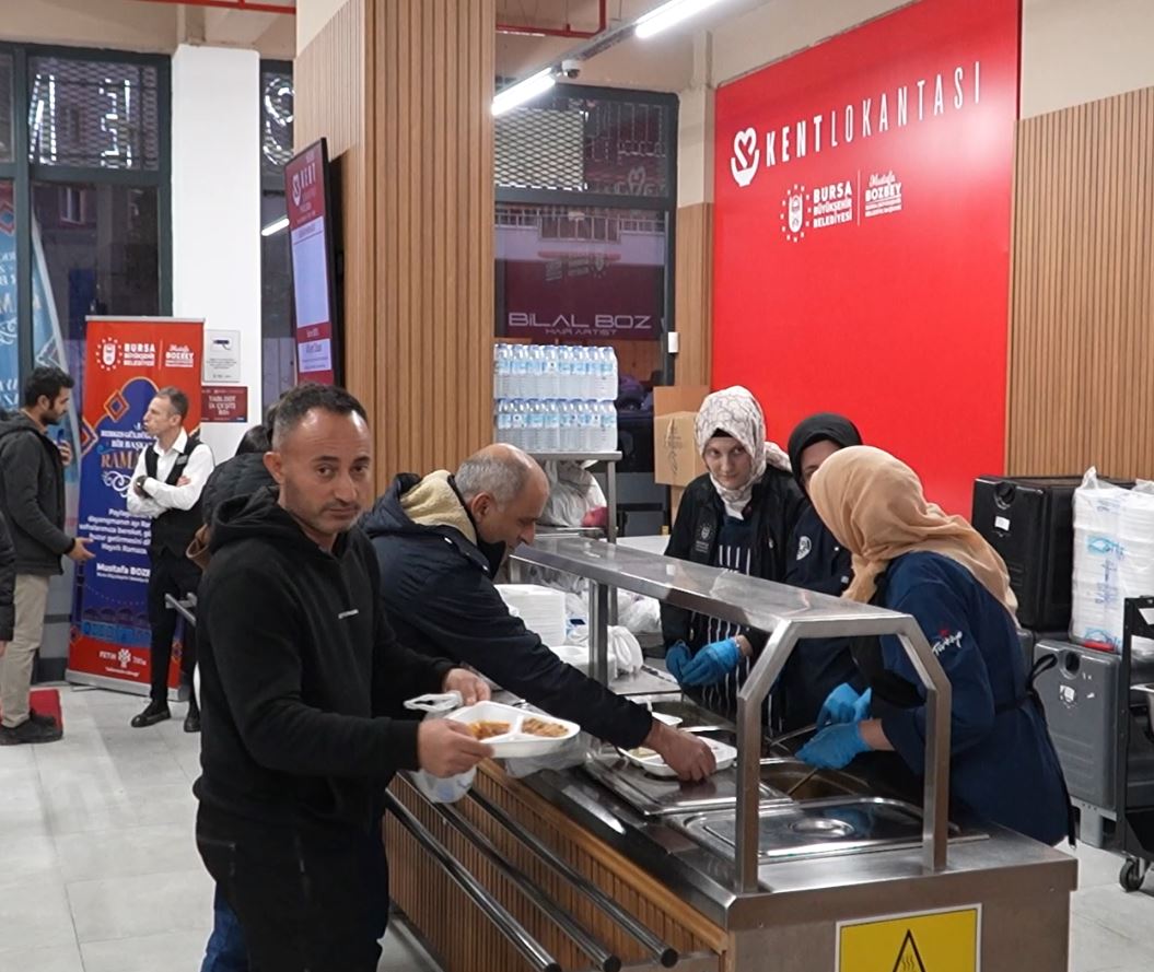 Bursa Büyükşehir Belediyesi tarafından sosyal belediyecilik örneği olarak kente kazandırılan 3 Kent Lokantası da Ramazan boyunca ihtiyaç sahiplerine ücretsiz olarak hizmet veriyor. Kentin 14 ayrı noktasında ise her gün ekipler tarafından iftara yetişemeyen vatandaşlara iftariyelik dağıtılıyor.