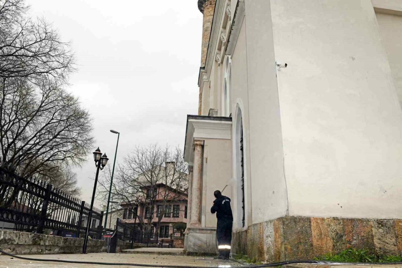 Osmangazi Belediyesi, Ramazan ayına hazırlık kapsamında ilçedeki toplam 400 cami ve mescitte temizlik çalışması yapıyor. Gerçekleştirilen çalışmalarda, camilerin iç ve dış alanları detaylı bir şekilde temizleniyor. Halılar da hijyen kurallarına uygun şekilde dezenfekte ediliyor. Cami bahçeleri, şadırvanlar, abdesthaneler ve tuvaletler de hijyen kurallarına uygun olarak temizleniyor. Ayrıca camilerin avizeleri, pencereleri, mihrap, minber ve kürsü gibi bölümleri de özenle temizlenerek ibadete hazır hale getiriliyor. Osmangazi Belediyesi’nin gerçekleştirdiği cami temizlik çalışmaları, başta cami görevlileri olmak üzere vatandaşlar tarafından da büyük bir memnuniyetle karşılandı.