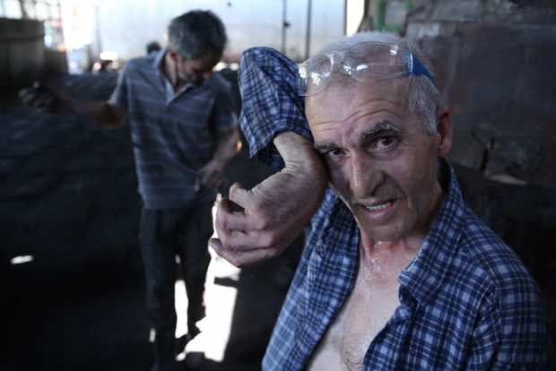 Bin 200 ila bin 800 derecede eriyen demiri, yaklaşık 60 dereceye ulaşan iç ortamda, iş yerinin dört bir yanına durmaksızın taşıyan işçiler, dayanılmaz sıcaklıktan bir süreliğine uzaklaşmak ve serinlemek amacıyla, son günlerde etkili olan kavurucu sıcaklarda güneşe çıkıyor.