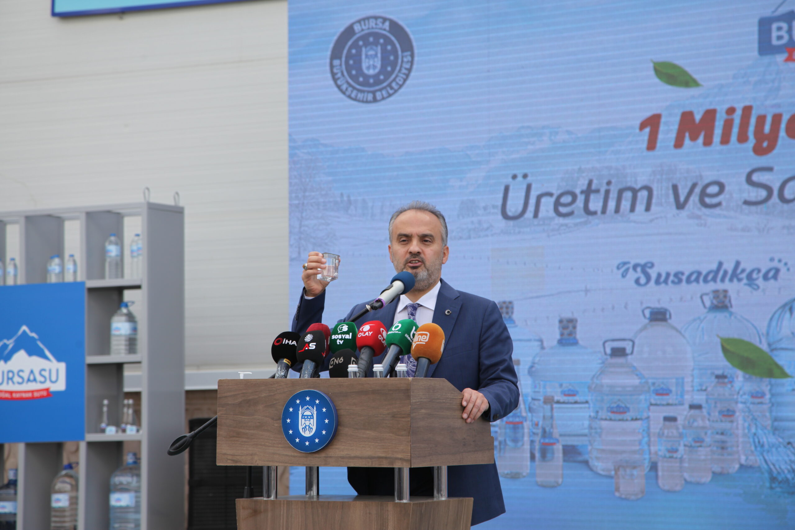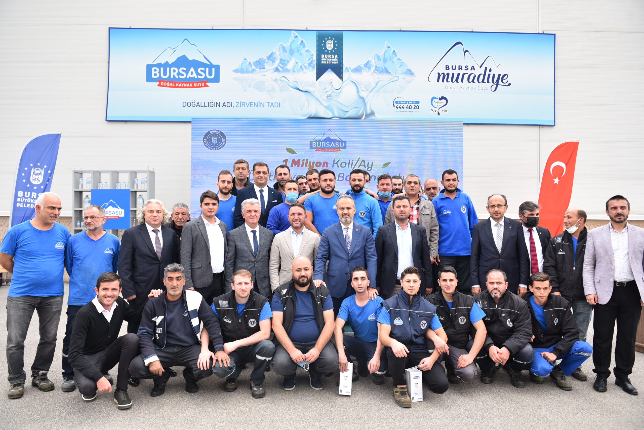 Su fabrikasını kente kazandıran geçmiş dönem Büyükşehir Belediye Başkanı Recep Altepe’ye teşekkür eden Başkan Aktaş, “Pandemi koşullarının devam etmesi, dünyada ve Türkiye’de yaşanan hammadde temini problemlerine rağmen 2021 yılı ilk 9 aylık üretim miktarımız 5 milyon koliyi aşmış durumda. 2020 yılı sonu itibariyle yeni kaynak ve yeni marka Bursasu ile yeni bir hamle başlatıldı. Türkiye’nin damak tadına daha uygun 1991 metre yükseklikten gelen yeni kaynak suyumuz “doğallığın adı zirvenin tadı” sloganıyla piyasaya sürüldü. 2020 yılına kadar aylık ortalama 80 bin koli olarak seyreden Bursa merkezdeki pet su ürünleri satışı, 2020 yılında ortalama 160 bin koliye, 2021 yılında yüzde 75’lik artışla 280 binkoliye yükseltildi. Bu rakamla Bursasu, Bursa’da en çok satılan ilk 3 marka arasına girdi” ifadelerini kullandı.