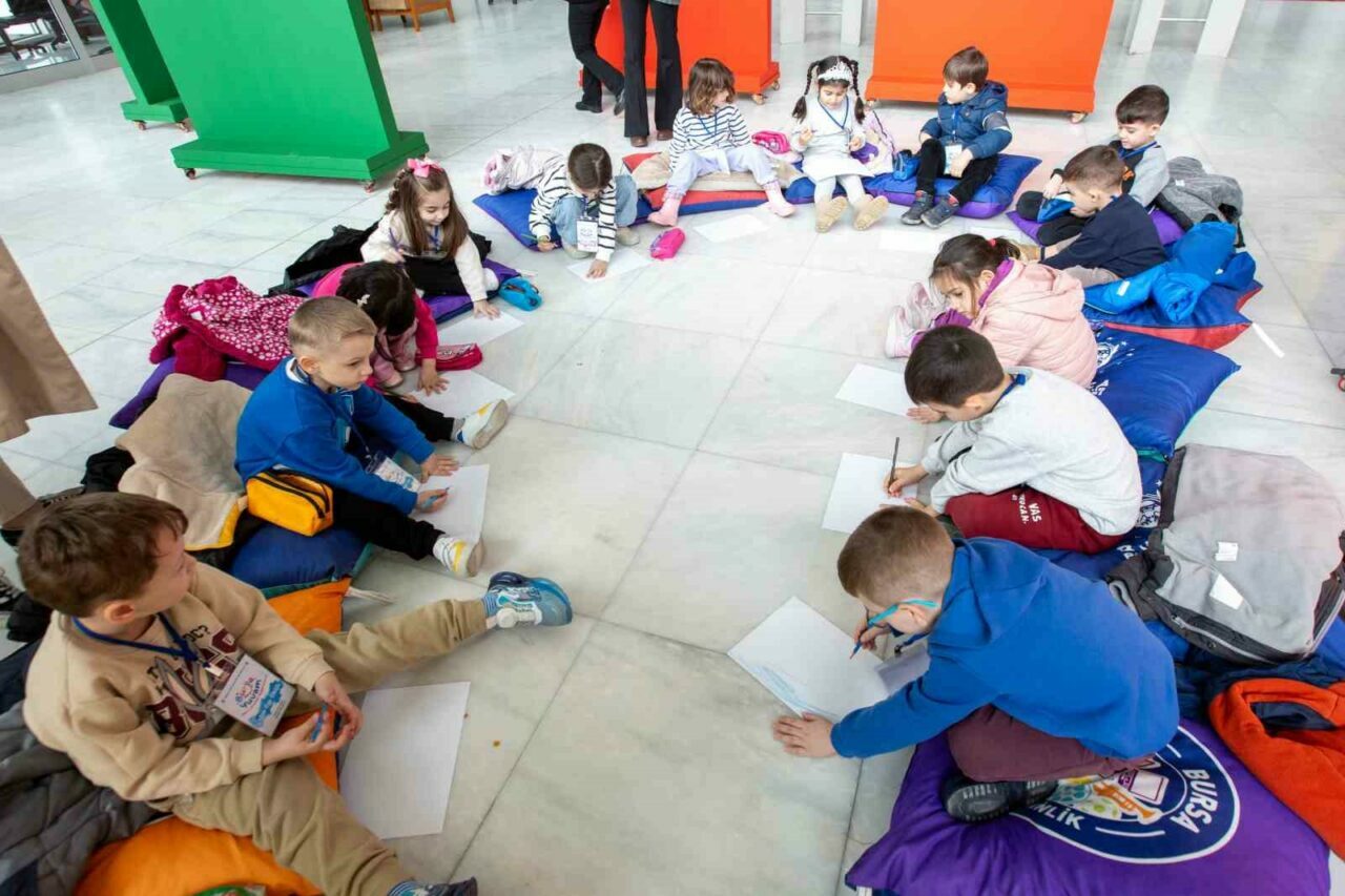 Bursa Büyükşehir Belediyesi Kültür ve Sosyal İşler Dairesi Başkanlığına bağlı Kültür Şube Müdürlüğü tarafından Merinos Atatürk Kongre Kültür Merkezi’nde hazırlanan ‘Resimlerden Resim Beğen-Bir Koleksiyonerin Seçkisi’ isimli sergi, Büyükşehir Belediyesi personel kreşinde eğitim gören minikler tarafından ziyaret edildi. Sergide yer alan resimlerin anlatıldığı etkileşimli gezinin ardından minikler ‘Hayal et resmet’ atölyesine katıldı.