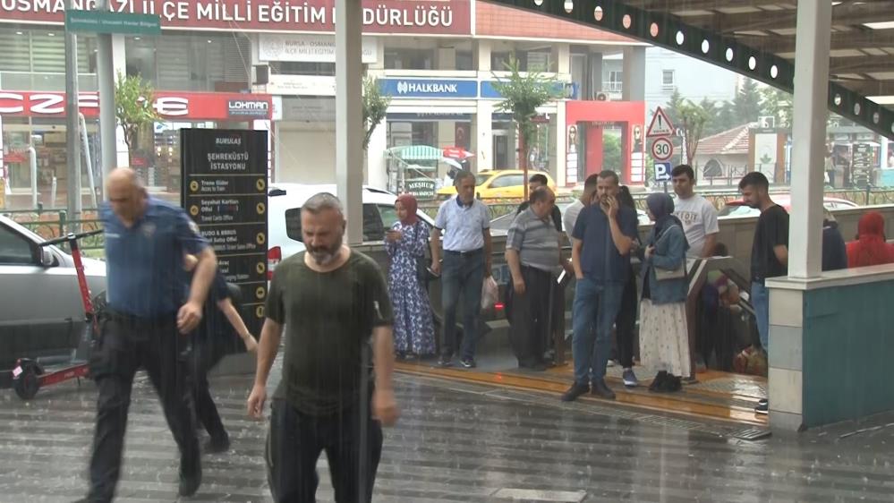 Yağmura hazırlıksız yakalanan vatandaşlar, iş merkezlerinin girişlerinde ve çatı altlarında beklerken, yağmurun şiddeti sebebiyle mazgallarda yağmur suları birikti.