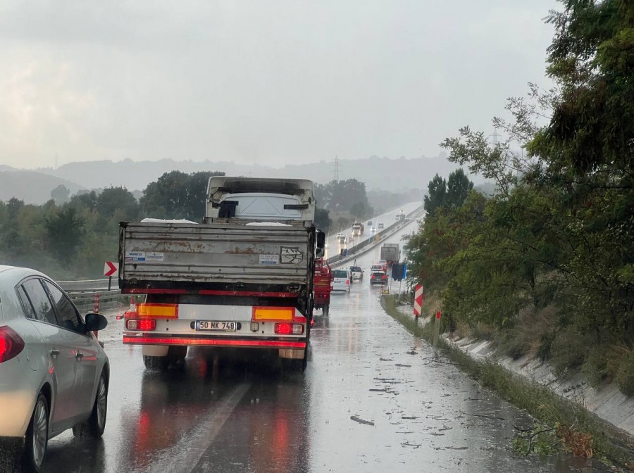 Sürücüler, yollarda biriken su nedeniyle ilerlemekte güçlük çekerken, trafikte aksamalar yaşandı. İnegöl-Bursa kara yolunda uzun araç kuyrukları oluştu.
