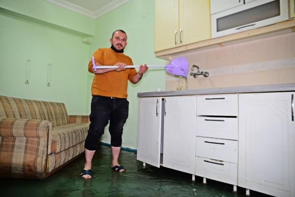 Talip Çetin, evin büyük bölümünü kaplayan suyu kendi imkanlarıyla boşaltırken eşyalarının kullanılmaz hale gediğini belirtti. Yetkililerden yardım beklediğini söyleyen Çetin, “Sabah marketimi açmaya gidecektim. Uyandığımda kendimi rüyada gibi hissettim, su seslerinin arasında. Kalktığımda evin içerisinde bir koku vardı, yere bastığımda anladım ki evin içerisinde su var. Evin her yeri baştan başa su oldu. Ne yatak kaldı, ne baza, ne beyaz eşya. Hepsi sular altında kaldı. Zararımın giderilmesini istiyorum. Sabah 7’den beri yetkililere ulaşmaya çalışıyorum, evimin içerisinde lağım suları var. Evin içinde yaklaşık 10 santimetre su var ve yağmur yağdıkça gelmeye devam ediyor” diye konuştu. DHA