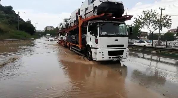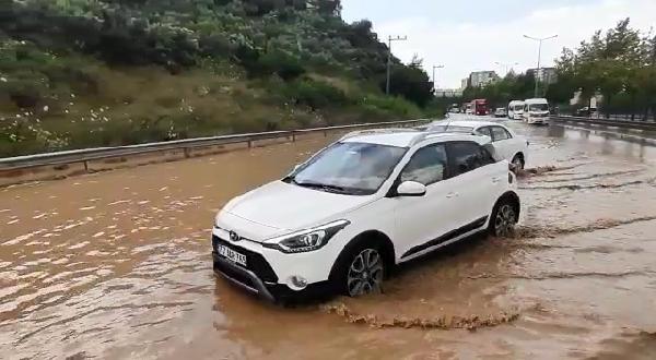 İlçede 10 dakika etkili olan sağanak nedeniyle Bursa-Yalova yolunda su birikintileri oluştu.