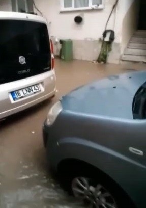 Şiddetli yağışta Yıldırım Yediselviler Mahallesi’nde rögarın tıkanmasıyla ara sokaklar dereye döndü.