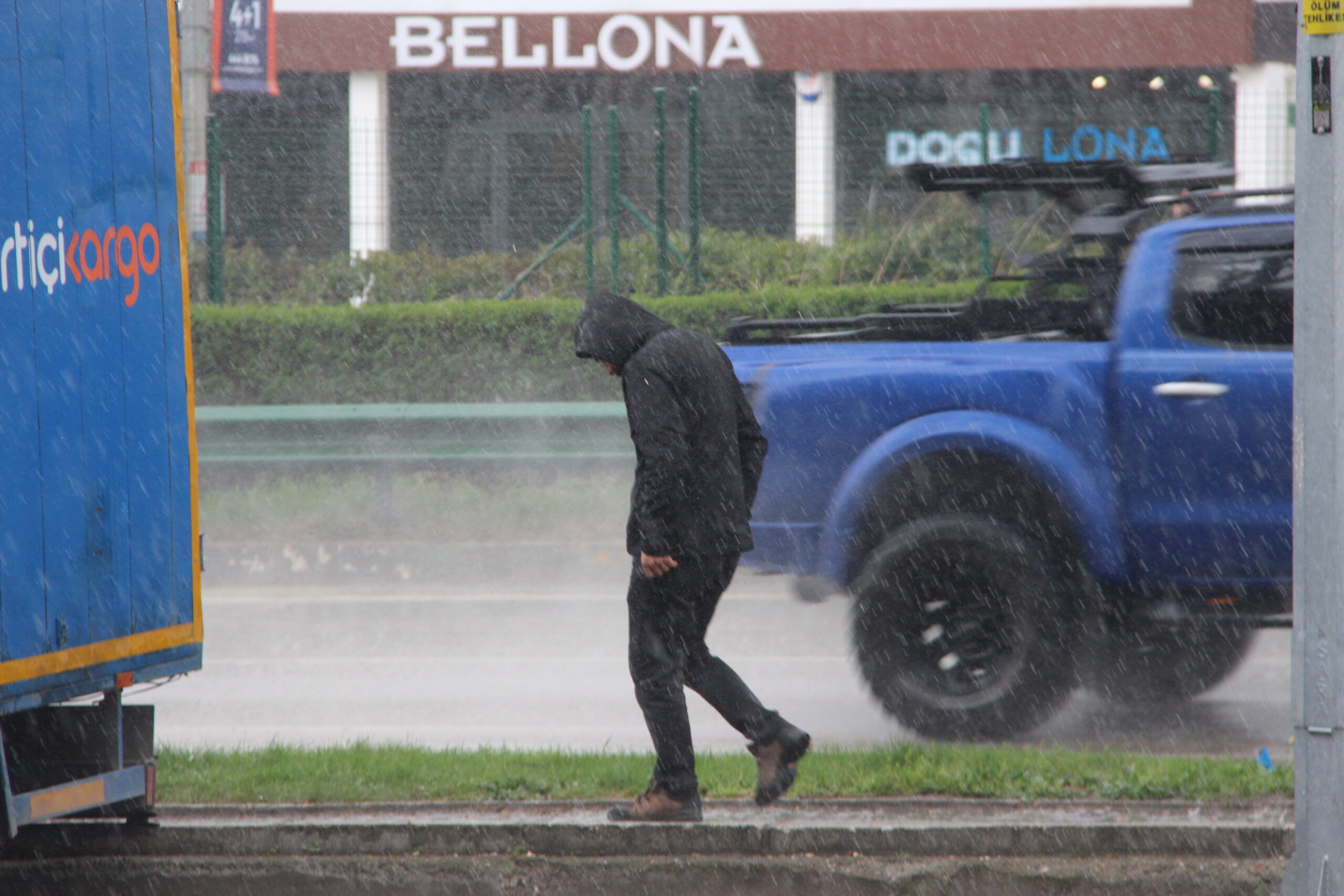 Cadde ve sokaklarda yağışın etkisiyle su birikintileri oluşurken, yağmura hazırlıksız yakalananlar kapalı alanlara sığındı.