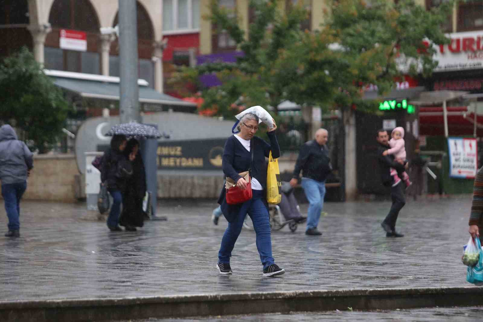 Bursa’da aniden bastıran sağanak yağış, etkili oldu.