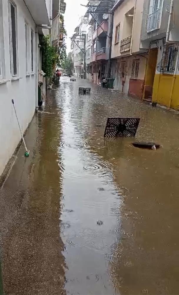 Bursa’da öğlen saatlerinde aniden bastıran sağanak hayatı felç etti. Rögarlar taşarken, yollar göle döndü.