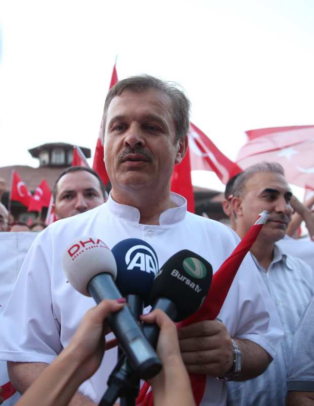 İl Sağlık Müdürü Dr. Özcan Akan, yürüyüş öncesi gazetecilere yaptığı açıklamada, Bursa’da görev yapan kamu ve özel tüm sağlık çalışanları olarak 15 Temmuz’da yapılan darbe girişimine tepkilerini dile getirmek için topladıklarını söyledi.