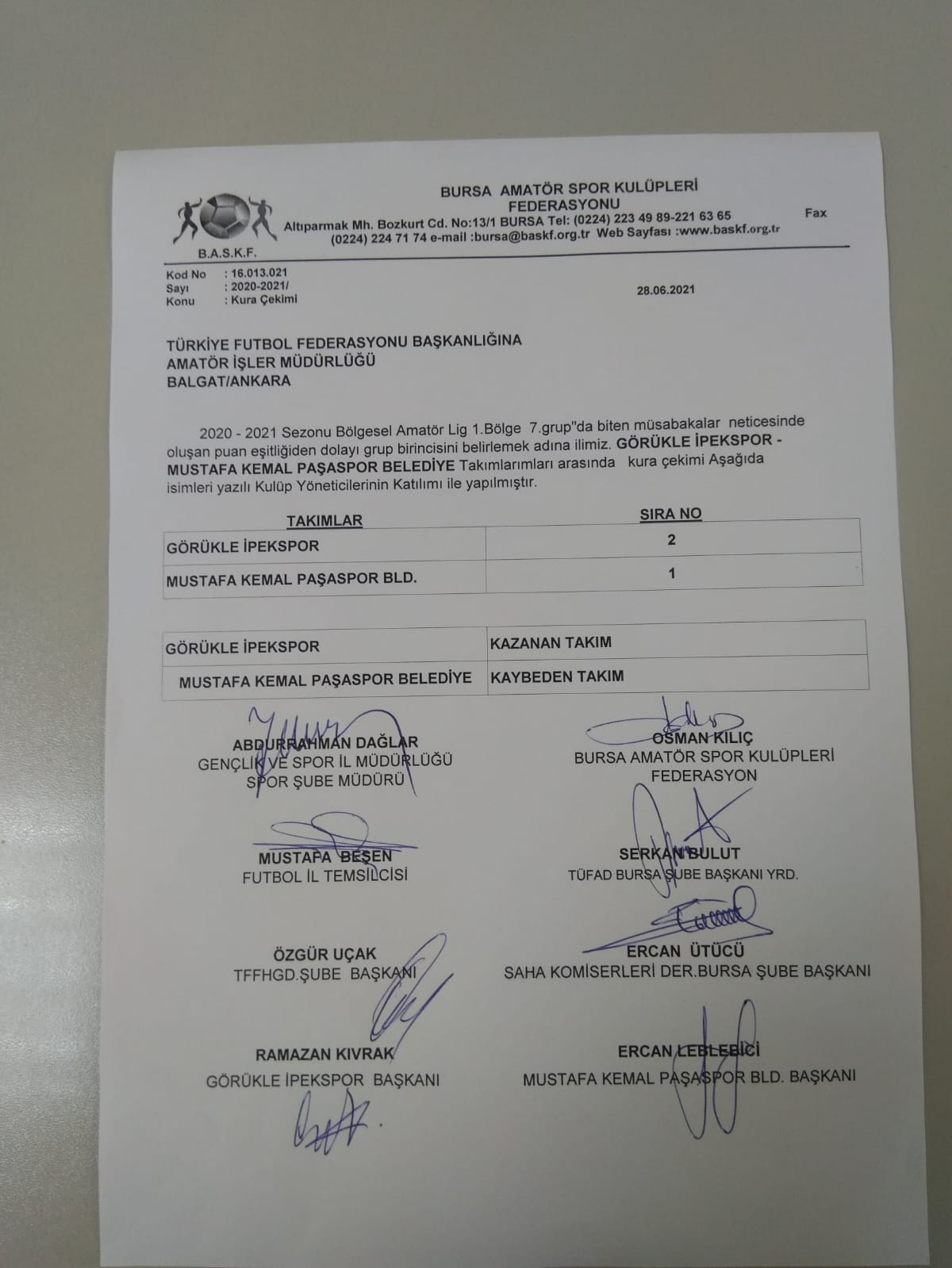 TFF’nin belirlediği statüye göre lideri belirlemek için Bursa Amatör Spor kulüpleri Federasyonu binasında iki kulüp başkanının da katılımıyla kura çekimi yapıldı.