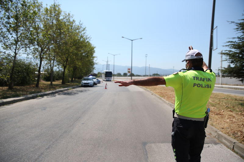 Trafik Denetleme Şube Müdürlüğü ekipleri, Bursa Şehirlerarası Otobüs Terminali çıkışındaki trafik noktasında 24 saat esasına göre uygulamalar gerçekleştiriyor.