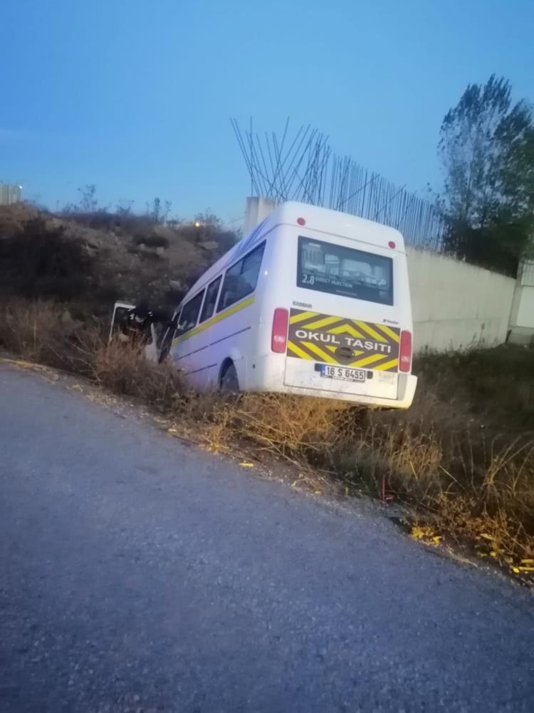 Mobilya fabrikasından işçi almaya giden sürücü Halil İ.(55) yönetimindeki 16 S 6455 plakalı servis minibüsü, sürücüsünün kontrolünden çıktı. Yoldan çıkan araç, fabrika duvarı inşaatının temeline uçtu. Kaza sonucu sürücü yaralandı.