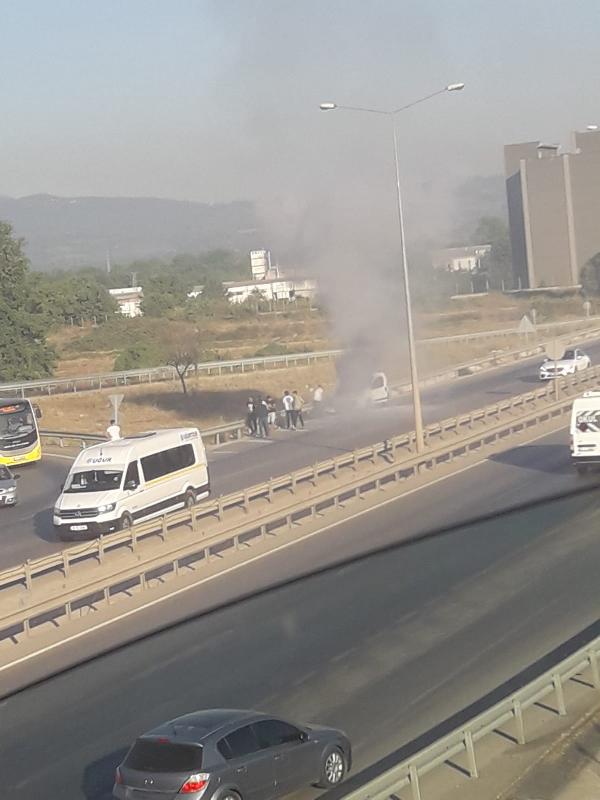 İnegöl’den Bursa merkez yönüne seyir halinde olan sürücü Sabiha Yıldırak yönetimindeki 16 KPF 01 plakalı hafif ticari aracın, motor kısmından bilinmeyen nedenle dumanlar çıkmaya başladı.