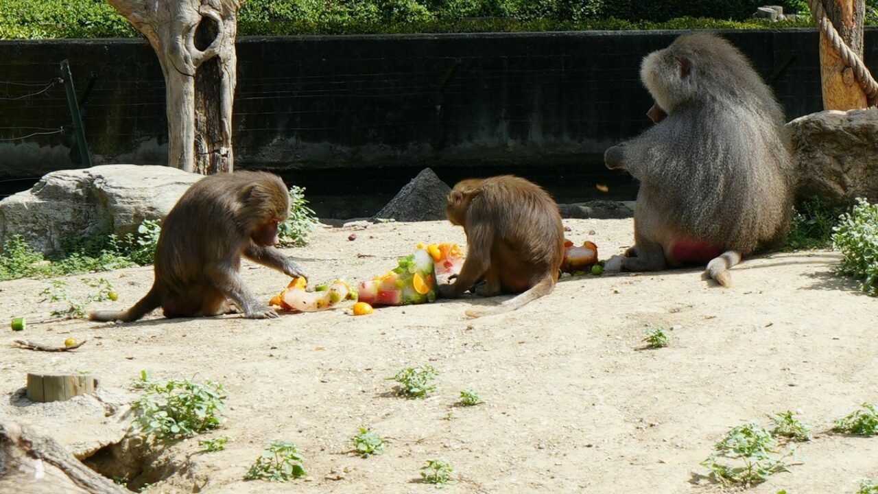 Hayvanat bahçesi çalışanları, inek, eşek, deve, at gibi hayvanları hortumlarla serinletmeye çalışırken, bazı hayvanları ise çeşitli sebze ve meyvelerden oluşan buzlu karışımla serinletmeye çalıştı. Bakıcıları tarafından özenle hazırlanan kokteyller için birbiriyle yarışan maymunlar, sıcak havada serinlemenin keyfini çıkardı.