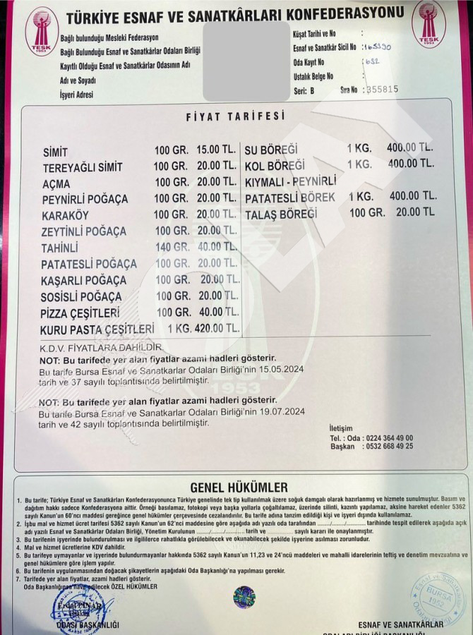 Eski tarifede 280 lira olan kuru pasta çeşitlerinin kilosu ise 420 lira olarak belirlendi. Simitçiler ve Unlu Madde İmalatçıları Odası Başkanı Erdal Pınar, artan maliyetlerin esnafı zor durumda bıraktığını belirtti.