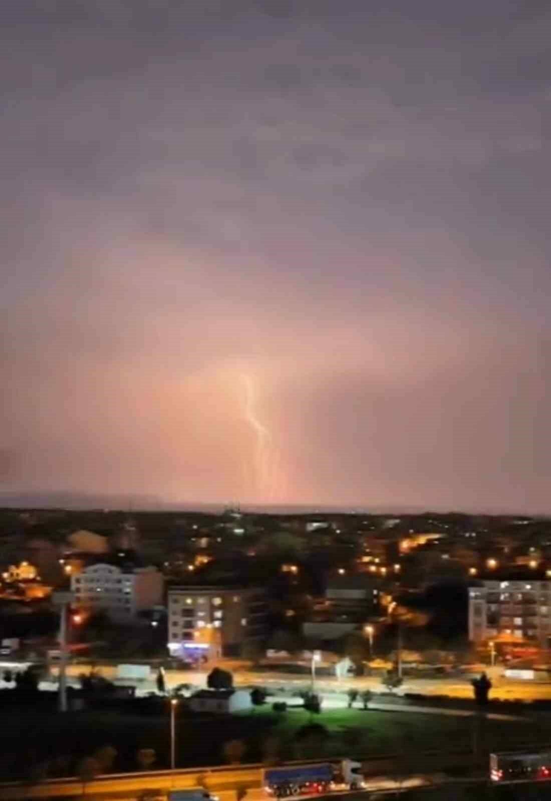 Bursa’nın Karacabey ilçesinde akşam saatlerinde art arda çakan şimşekler geceyi adeta gündüze çevirdi.