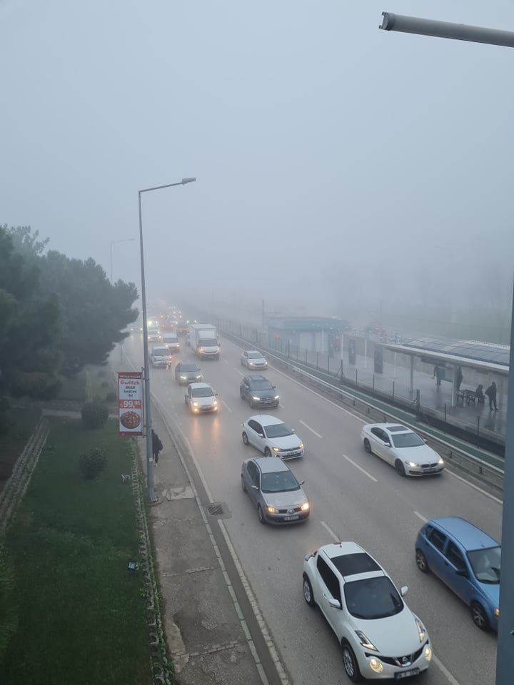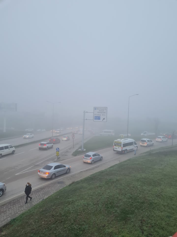 Hava sıcaklığının düşmesiyle birlikte Bursa’da meydana gelen yoğun sis, ulaşımı da etkiledi.