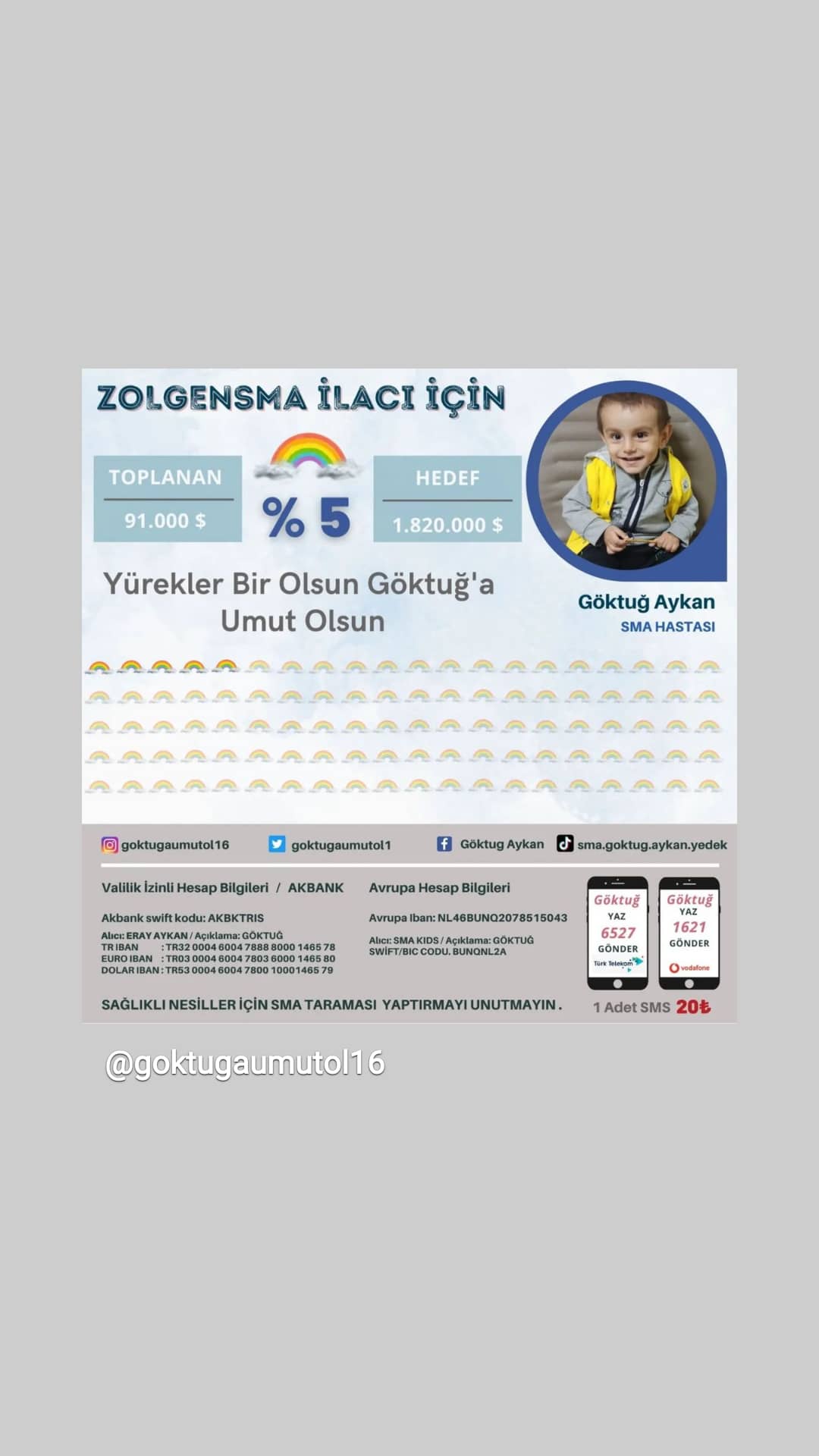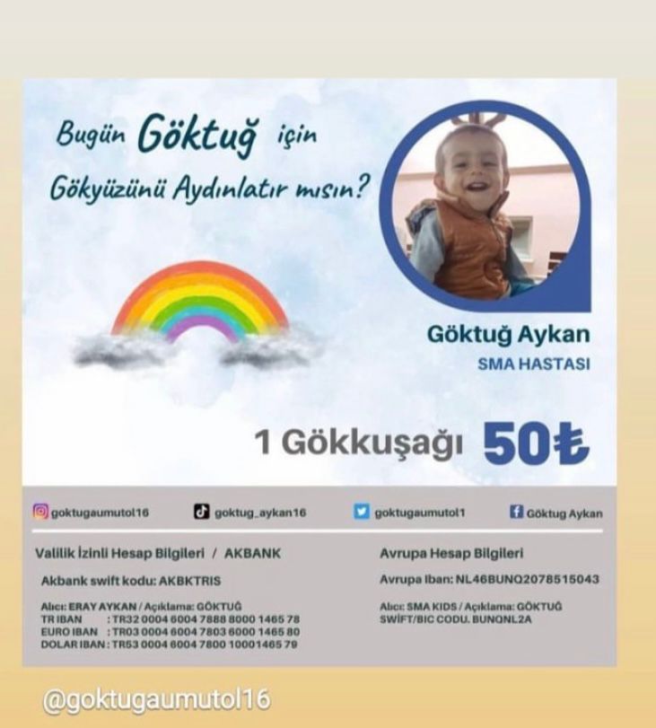 Göktuğ’u hayata bağlayabilmek için şu hesaplara katkıda bulunabilirsiniz;