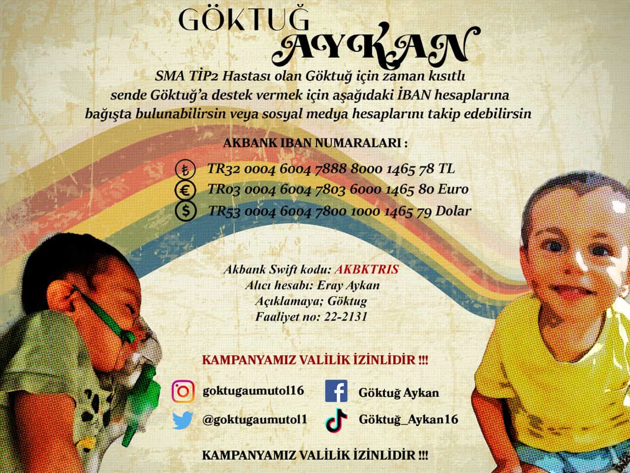 Minik Göktuğ’nun hayata tutunabilmesi için düzenlenen kampanyaya katılmak isteyen yardımseverler, baba Eray Aykan’a 0 535 810 95 07 nolu telefonda ulaşabilir ya da valilik izniyle açılan hesaplara para yatırabilirler…