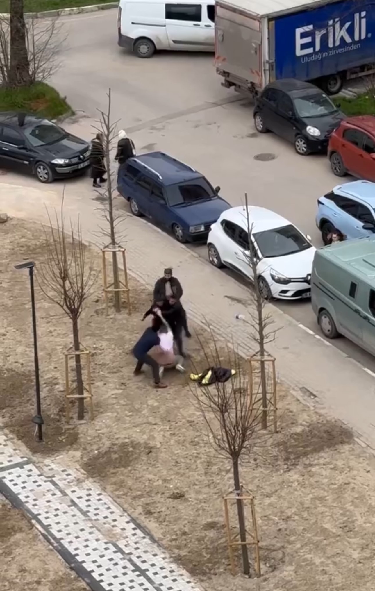 Tartışma kısa sürede büyürken taraflar birbirlerine yumruk ve tekmeler ile saldırdı. Araya çevredeki vatandaşlar girerken kavga anı cep telefonu kamerasına yansıdı.