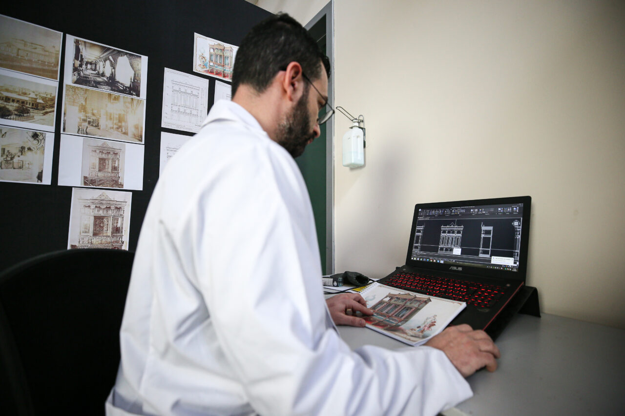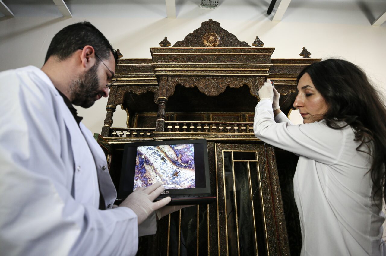 Yaşar, ahşap dolabı bir süre azot çadırında muhafaza ederek böcek aktivasyonunu bertaraf ettiklerini, sonrasında teknik çizimlerini yaptıklarını ve bozulma durumlarını tespit ettiklerini aktardı.
