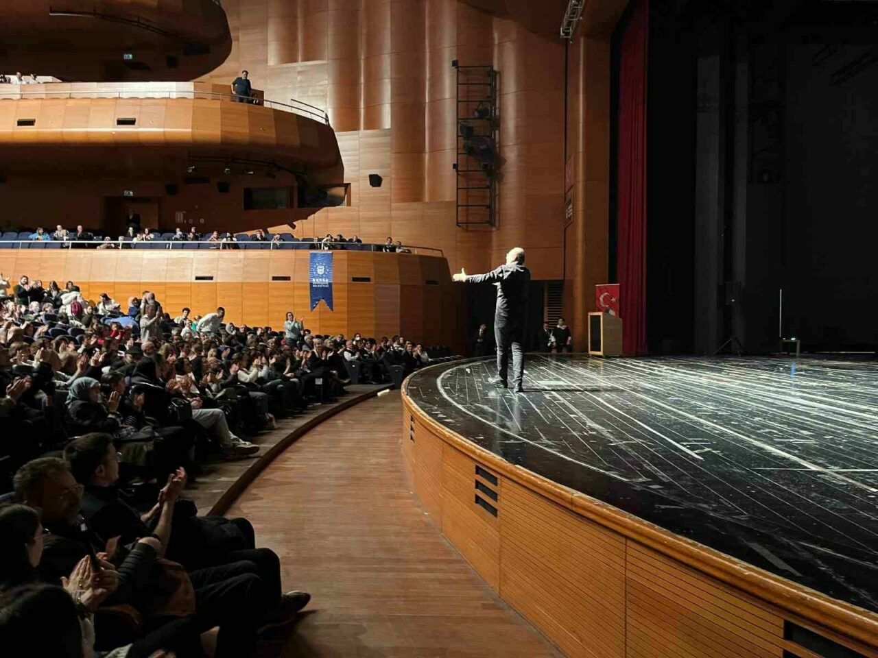 Ramazan etkinlikleri kapsamında Merinos Atatürk Kongre Kültür Merkezi’nde ünlü şair, yazar, araştırmacı ve tiyatro oyuncusu Sunay Akın’ın katılımıyla ‘Mahya Işıkları’ söyleşisi düzenlendi. Bursalıların yoğun ilgi gösterdiği programda, Sunay Akın tarafından mahyanın tarihi, kültürümüzdeki yeri ve Ramazan’ın anlamı anlatıldı. Keyifli anlatımıyla dinleyenleri zamanda yolculuğa çıkaran Sunay Akın, Bursalılara Ramazan’ın ruhunu daha yakından keşfetme imkanı sundu.