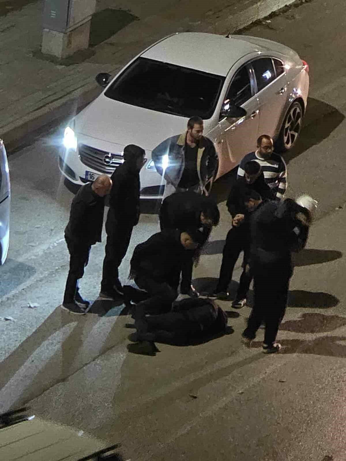 Çarpışmanın etkisiyle devrilerek sürüklenen motosiklet, yol kenarında park halinde olan 16 R 0030 ve 16 KBS 19 plakalı otomobillere çarparak durabildi.