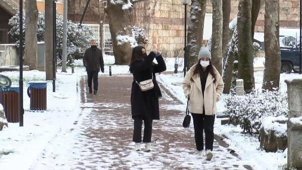 Bursa’da gece saatlerinde etkili olmaya başlayan kar yağışıyla kent merkezi beyaza büründü.