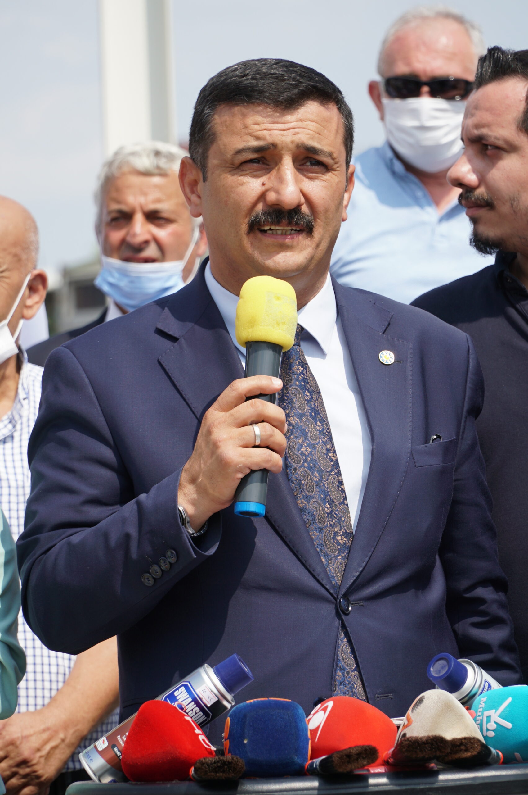 İYİ Parti İl Başkanı Selçuk Türkoğlu, raylara pas sökücü dökerek bitmeyen projeyi protesto etti.
