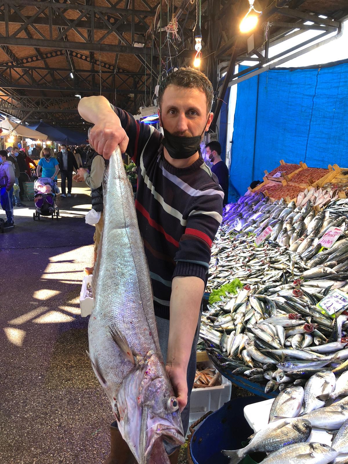 Şu ana kadar Türkiye’de en büyüğü 5 kiloluk olan mako mezgitler tezgaha çıkarken, 6 kilogramlık dev mezgit görenleri hayrete düşürdü.