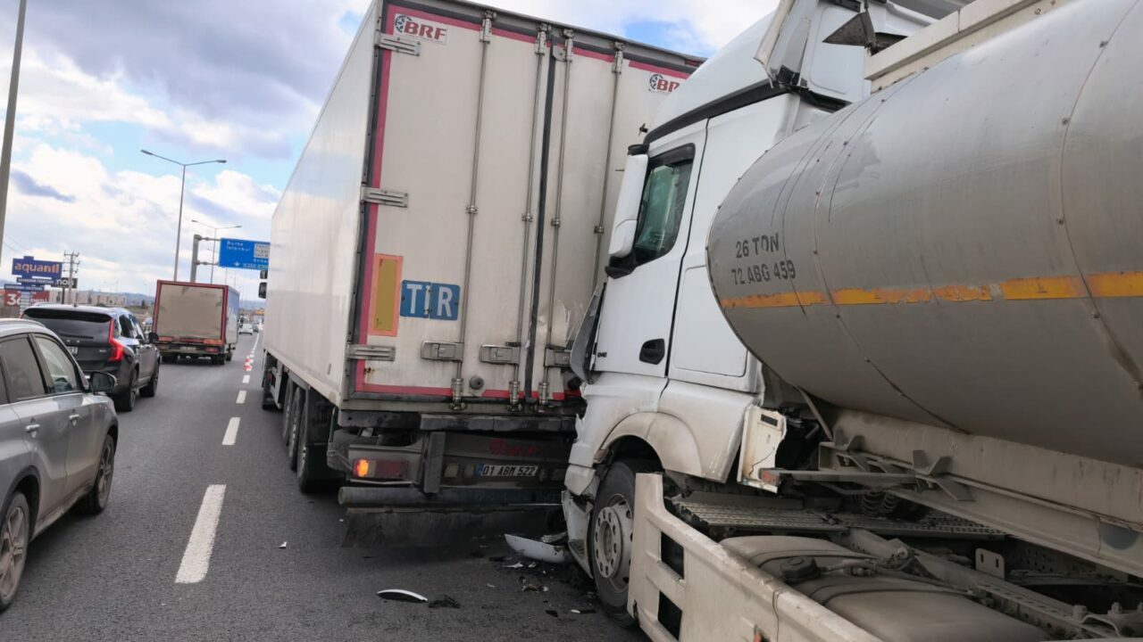 İnegöl’den Bursa’ya seyir halinde olan Mehmet A. yönetimindeki 72 ABG 629 plakalı zift yüklü tankerin kontrolünü kaybedip, önünde seyreden Muhammed K’nin (32) kullandığı 01 AJA 513 plakalı TIR’a arkadan çarptı.
