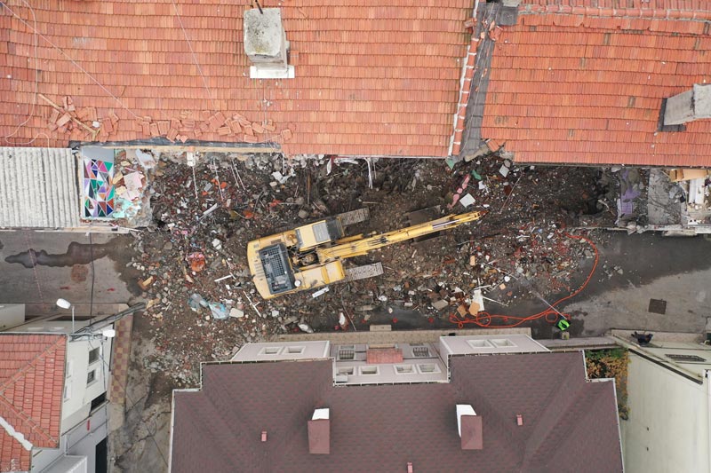 25 Mart 2021 tarihinde Kavaklı Mahallesi Üftade Sokak’ta sur duvarlarının kayması sonucu bölgedeki bazı binaların zarar gördüğünü hatırlatan Başkan Dündar, “Yaşanan üzücü olay sonrası vatandaşlarımızın can güvenliğini tehlikeye sokmamak adına yetkili kurumlar tarafından bölgede hızlı bir şekilde çalışmalar başlatıldı. Bursa Valiliği’nin koordinatörlüğünde, Çevre ve Şehircilik Müdürlüğü, AFAD, Büyükşehir Belediyesi, Bursa Kültür Varlıklarını Koruma Bölge Kurulu ve diğer ilgili birimlerin almış olduğu karar ve düzenlenen rapor doğrultusunda burası riskli bölge ilan edildi. Kurulda alınan karar gereği bu bölgede zarar gören binaların kamulaştırma görevi de Osmangazi Belediyesi’ne verildi. Belediye olarak, Mayıs ayı itibarıyla riskli bölgenin kamulaştırma çalışmalarına başladık. Toplam 239 bağımsız bölümden bugüne kadar 132’sini tanesi kamulaştırdık. Buradaki tehlikeli durumu ortadan kaldırmak için çalışmalarımız devam edecek. Vatandaşlarımız ile görüşmelerimiz sürüyor. Anlaşma yapılan yerlerin de yıkımlarına başladık. 1. Derece Arkeolojik Sit Alanı içerisinde kalan bu bölgedeki binaların yıkılmasının ardından elde edilecek alanı yeşil alana dönüştüreceğiz. Böylece inanç turizmi adına büyük bir öneme sahip Üftade Camii ve Türbesi’nin çevresini daha güzel bir yer haline getirmiş olacağız. Bursamıza hayırlı olsun” dedi.