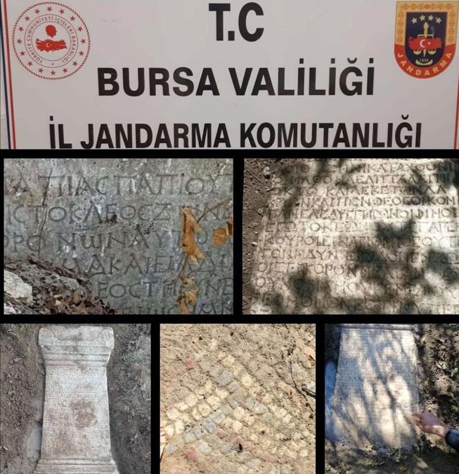 Tarihi eserlerin satılacağı ihbarı üzerine harekete geçen jandarma ekipleri, R.Ö.’nün kendisine ait tarlada yüz metrekarelik alanda kazı yaptığı aramalarda Roma dönemine ait olduğu değerlendirilen çok sayıda mozaik parçaları, 4 kabartma, Yunan alfabesiyle yazılmış mezar stelleri ve yaklaşık 5 ton ağrılığında mermer kaide ele geçirdi.