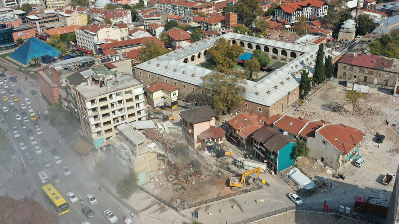 Bursa Büyükşehir Belediye Başkanı Alinur Aktaş, 14 han, 1 bedesten, 13 açık çarşı, 7 üstü örtülü çarşı, 11 kapalı çarşı, 4 pazar alanı, 21 cami, 177 sivil mimarlık örneği yapı, 1 okul ve 3 türbe bulunan bölgenin tam bir tarih hazinesi olduğunu hatırlattı. Bu hazineyi gün yüzüne çıkarmak için yoğun çaba harcadıklarını dile getiren Başkan Aktaş, kamulaştırma ve yıkım çalışmalarının program dahilinde devam ettiğini belirterek, “Ulucami’ye kadar uzayan bölgede yer alan ‘sonradan yapılmış’ binaları kaldırarak, tarihi alanın açığa çıkmasını sağlayacağız. Bu sayede hem şehrimize bir meydan kazandırılacak hem de tarihi kimliğimiz gün yüzüne çıkarılacak. Tarihi doku, şehir ile bütünleşecek” dedi.