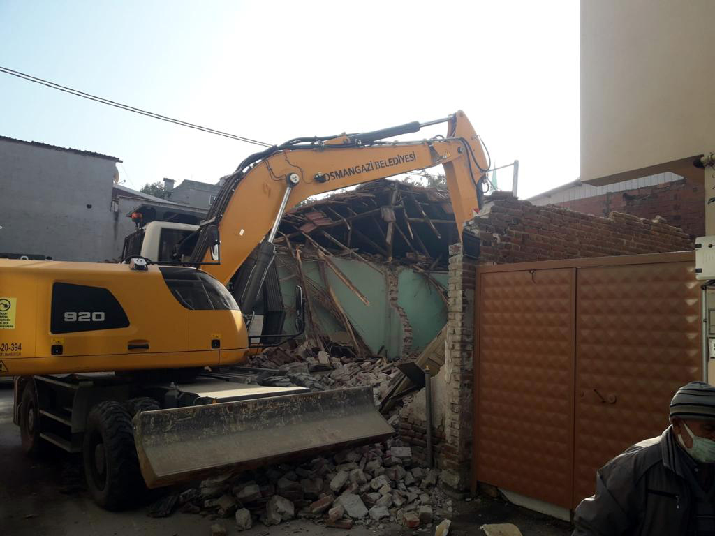 Mahallelerde yaşayan halkı oldukça tedirgin eden metruk binalar, Osmangazi Belediyesi Yapı Kontrol Müdürlüğü ekipleri tarafından durum tespiti yapılıp, yasal işlemlerinin tamamlanmasının ardından yıkılıyor.