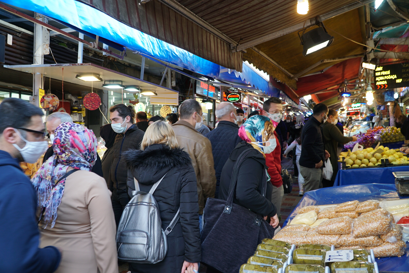 Sokağa çıkma kısıtlamasına takılmadan alışverişlerini tamamlamak isteyenler, tarihi çarşıdaki pazar ve kent merkezindeki marketlere akın etti.