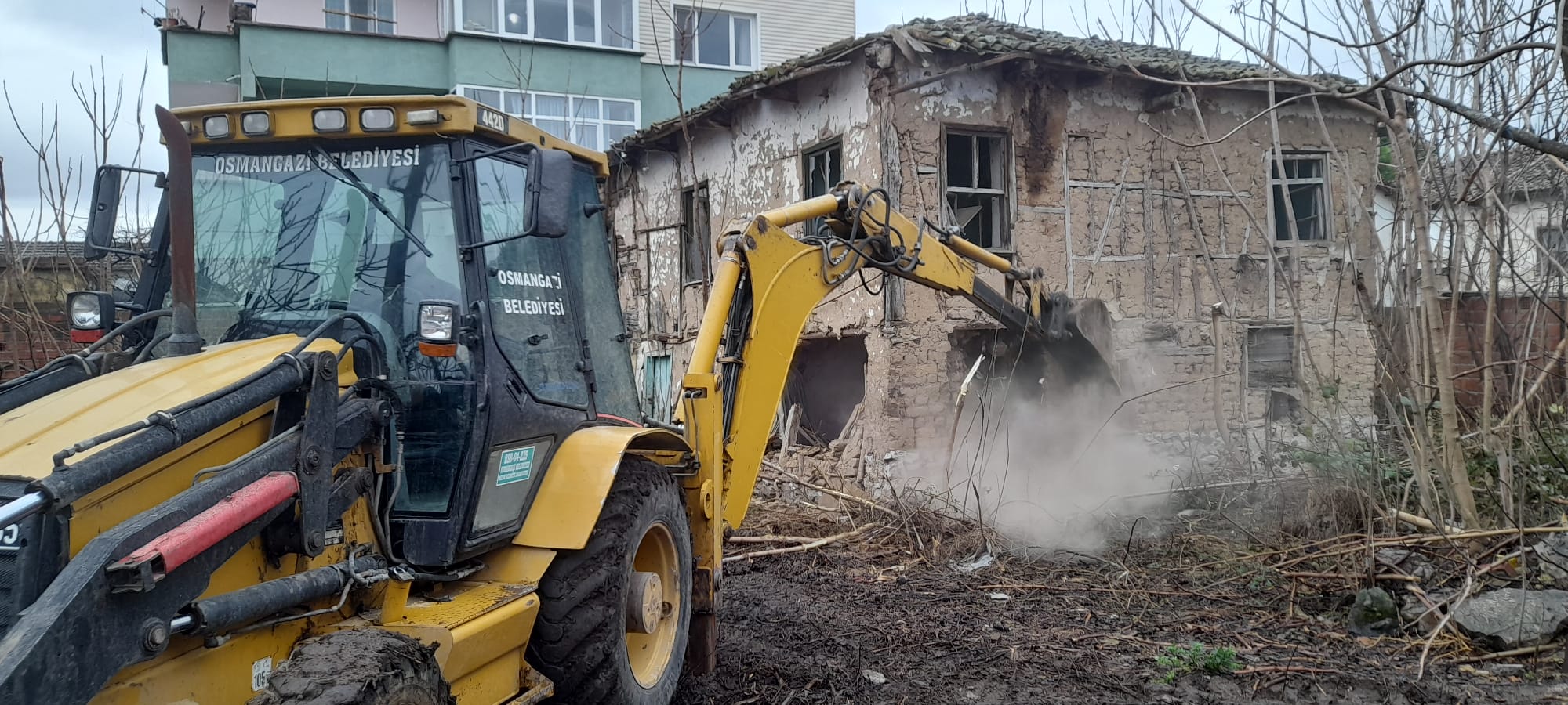 Osmangazi Belediyesi, madde bağımlılarının meskeni haline gelen, doğurduğu sosyal risklerin yanı sıra görüntü kirliliği ve haşere oluşumuna da neden olan metruk binaların yıkımını 2024 yılında da sürdürüyor.