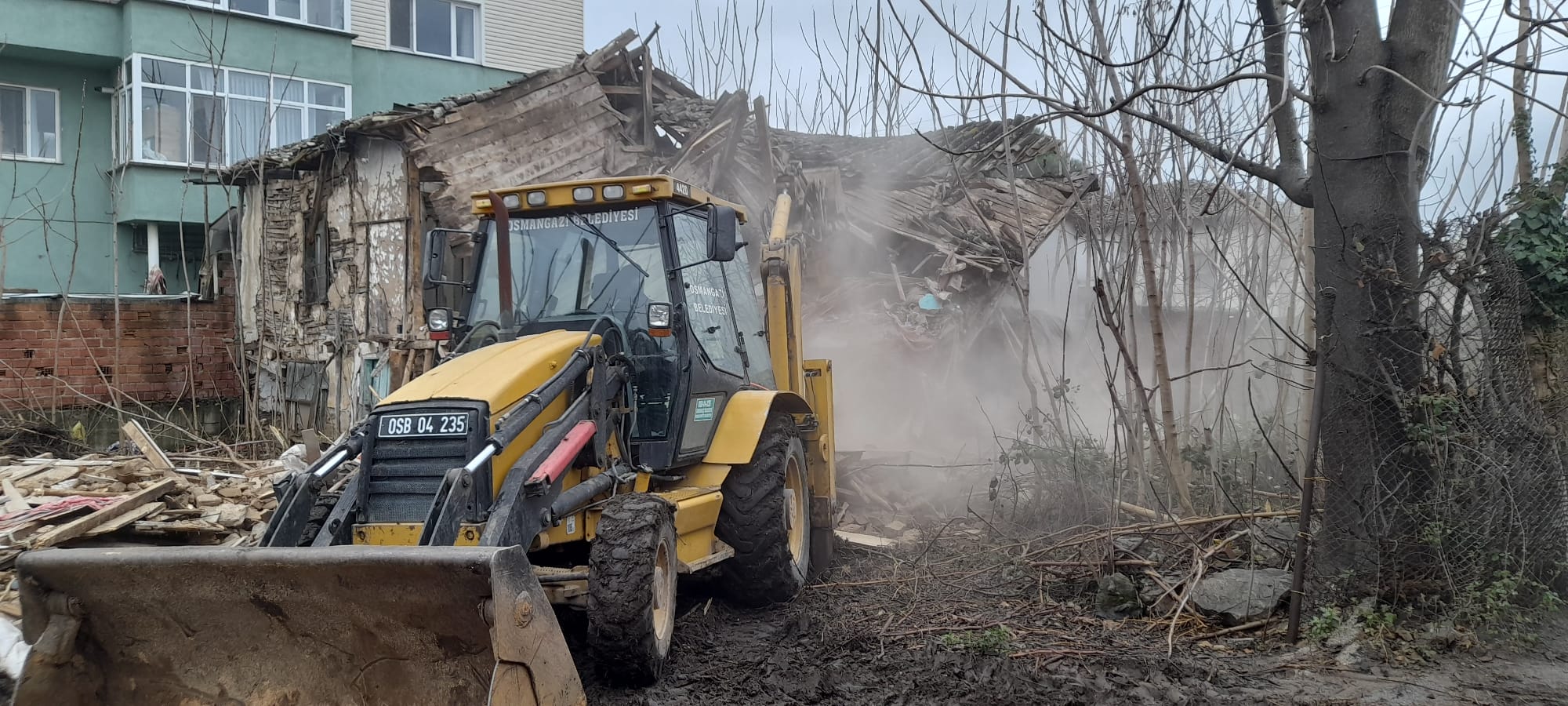 Belediye ekipleri, son olarak İsmetiye Mahallesi’nde yer alan metruk binayı iş makinesi ile yıktı.