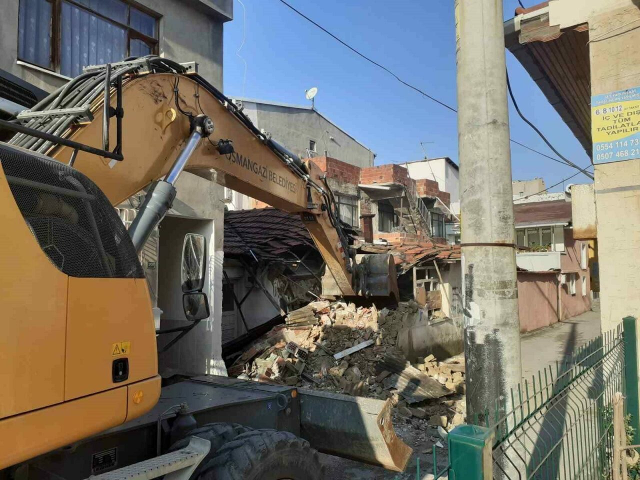 İlçe genelinde metruk binaların yıkılmasıyla ilgili çalışmalarını sürdüren Osmangazi Belediyesi, insanların can güvenliğini tehdit etmesinin yanı sıra, sosyal riskler oluşturan ve kent estetiğini bozan metruk binaları tespit ederek yıkımını gerçekleştiriyor.